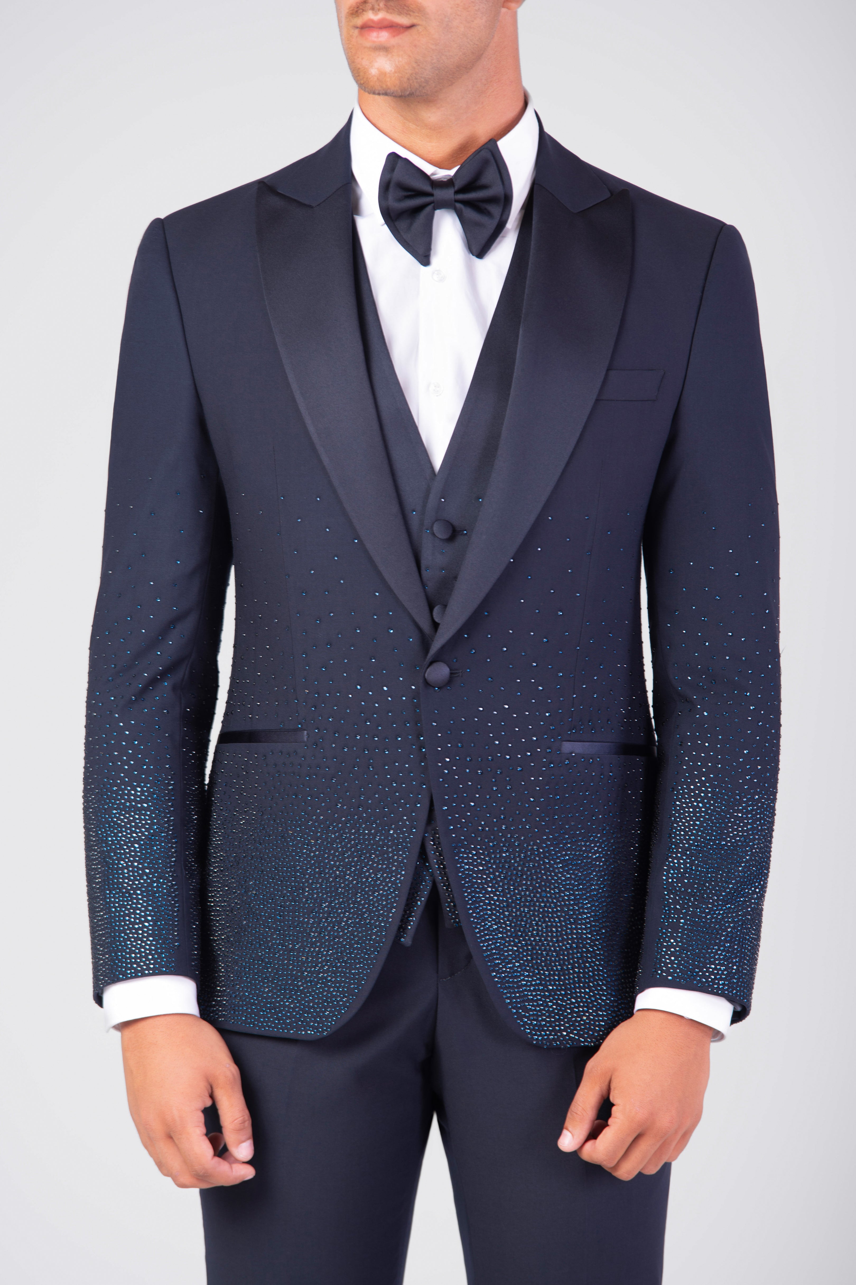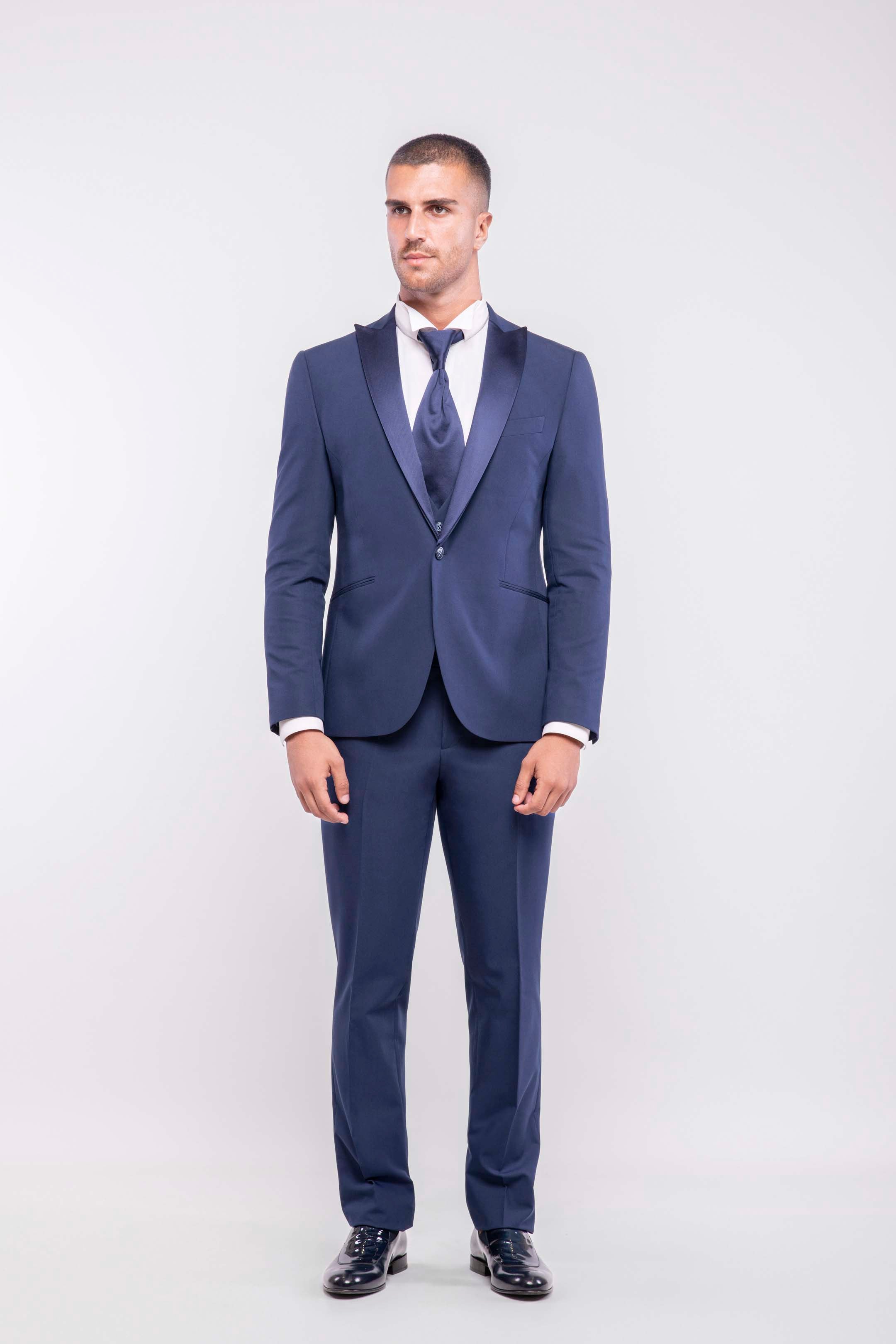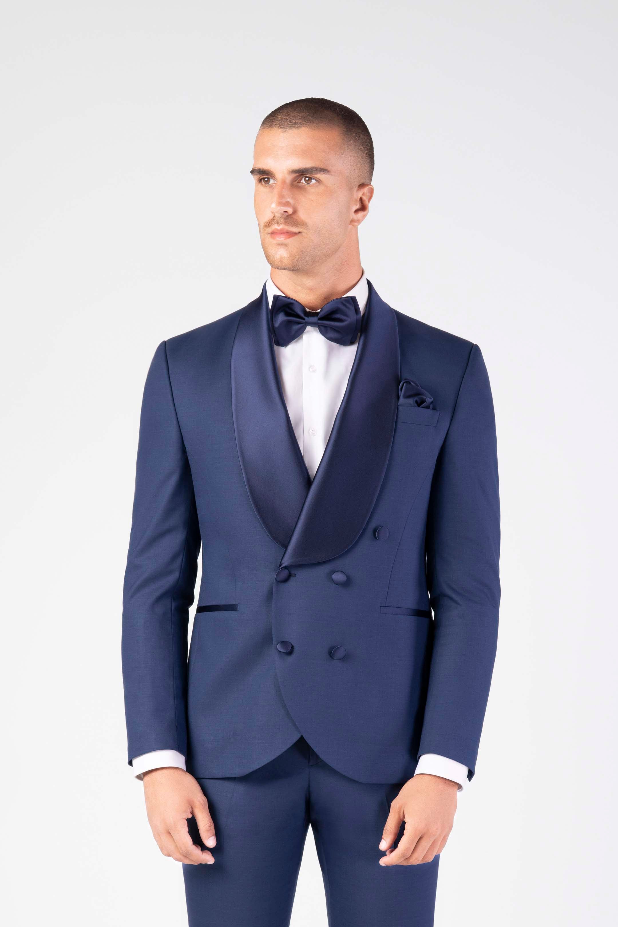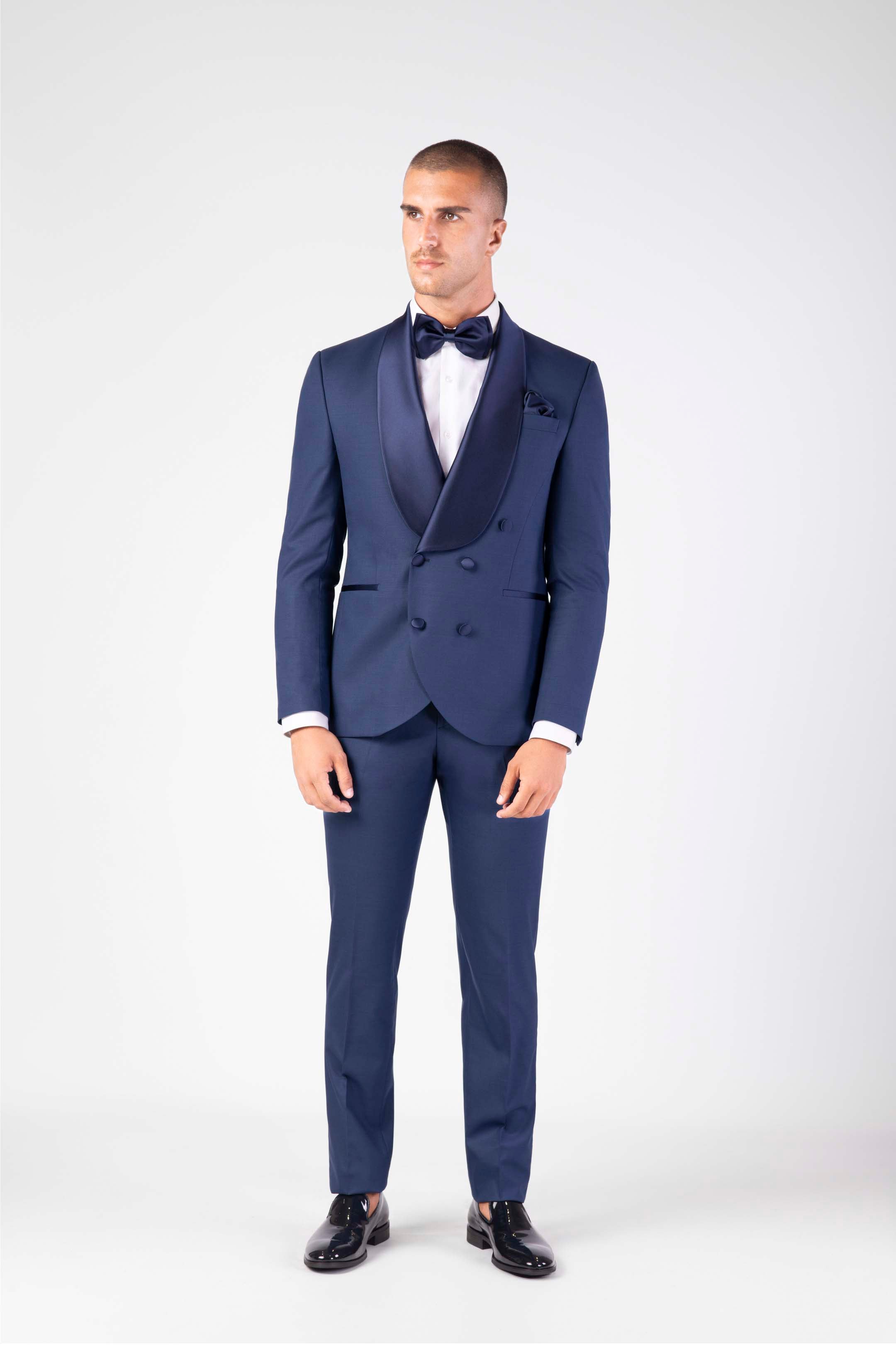 Traje de esmoquin con cuello de pico "Bluemark" en satén azul