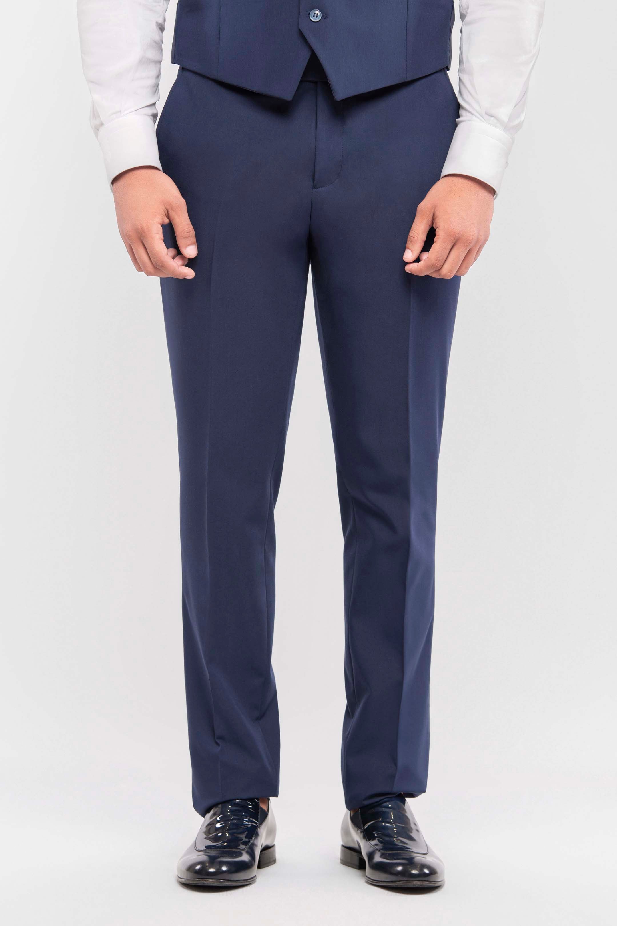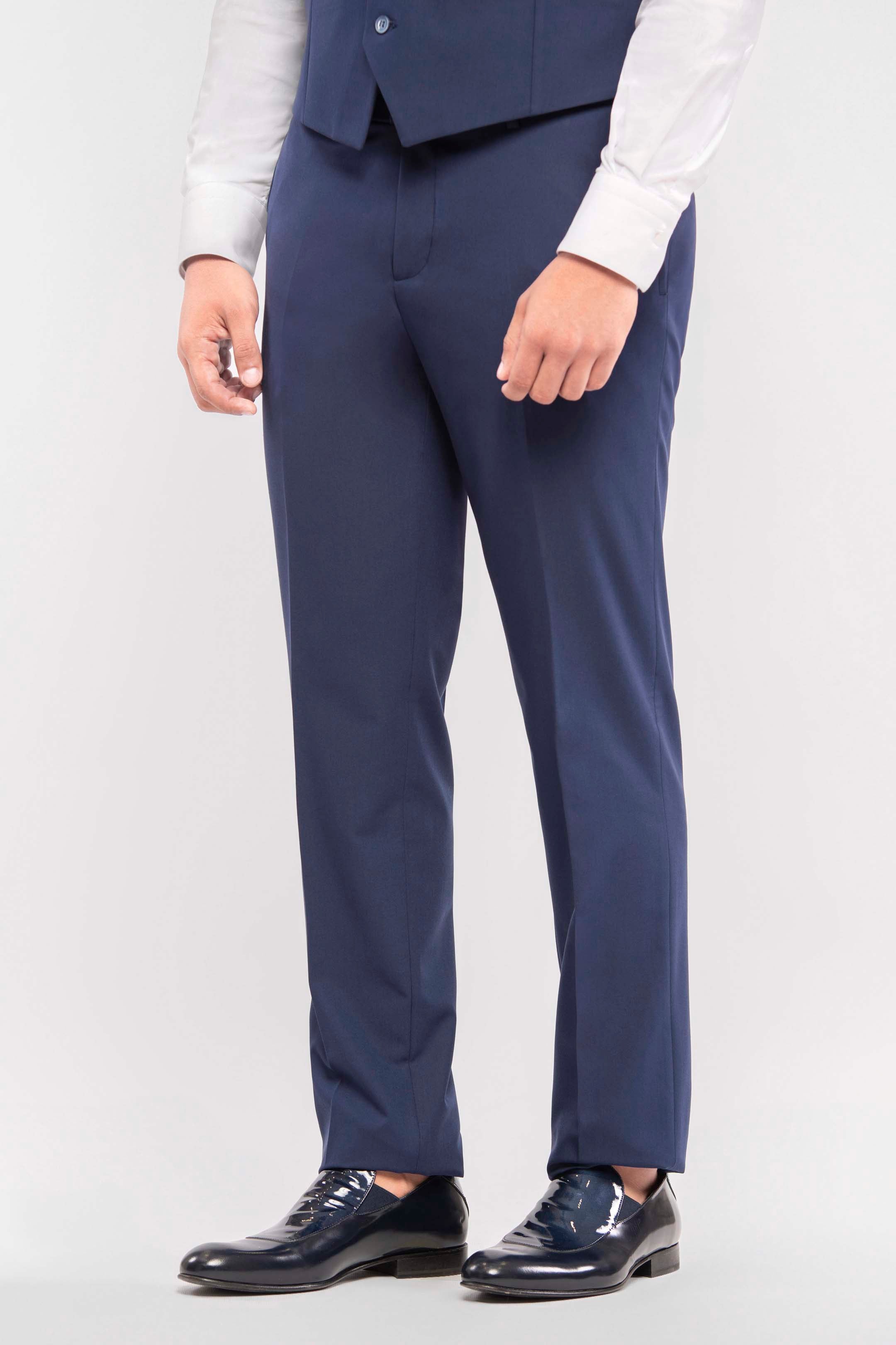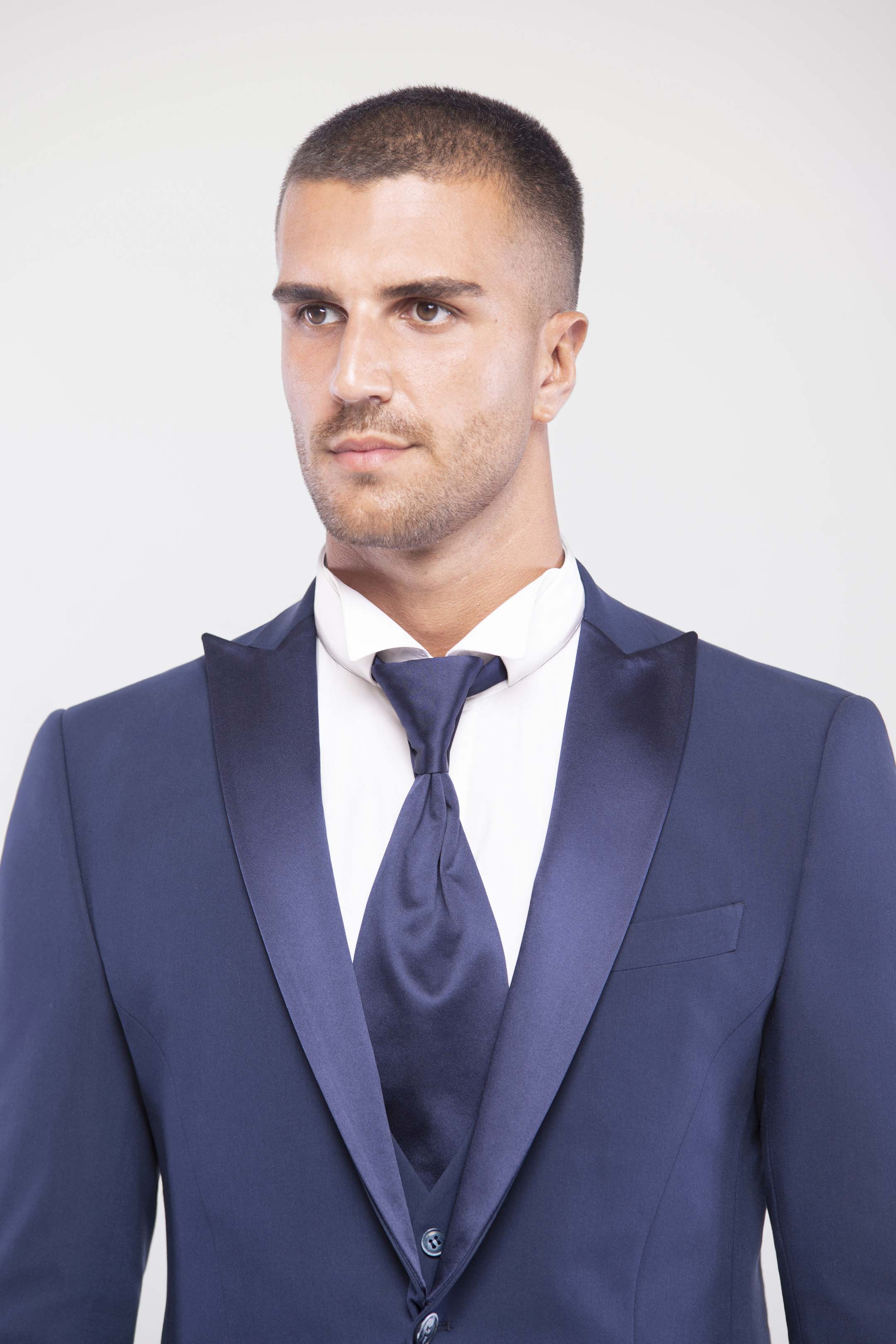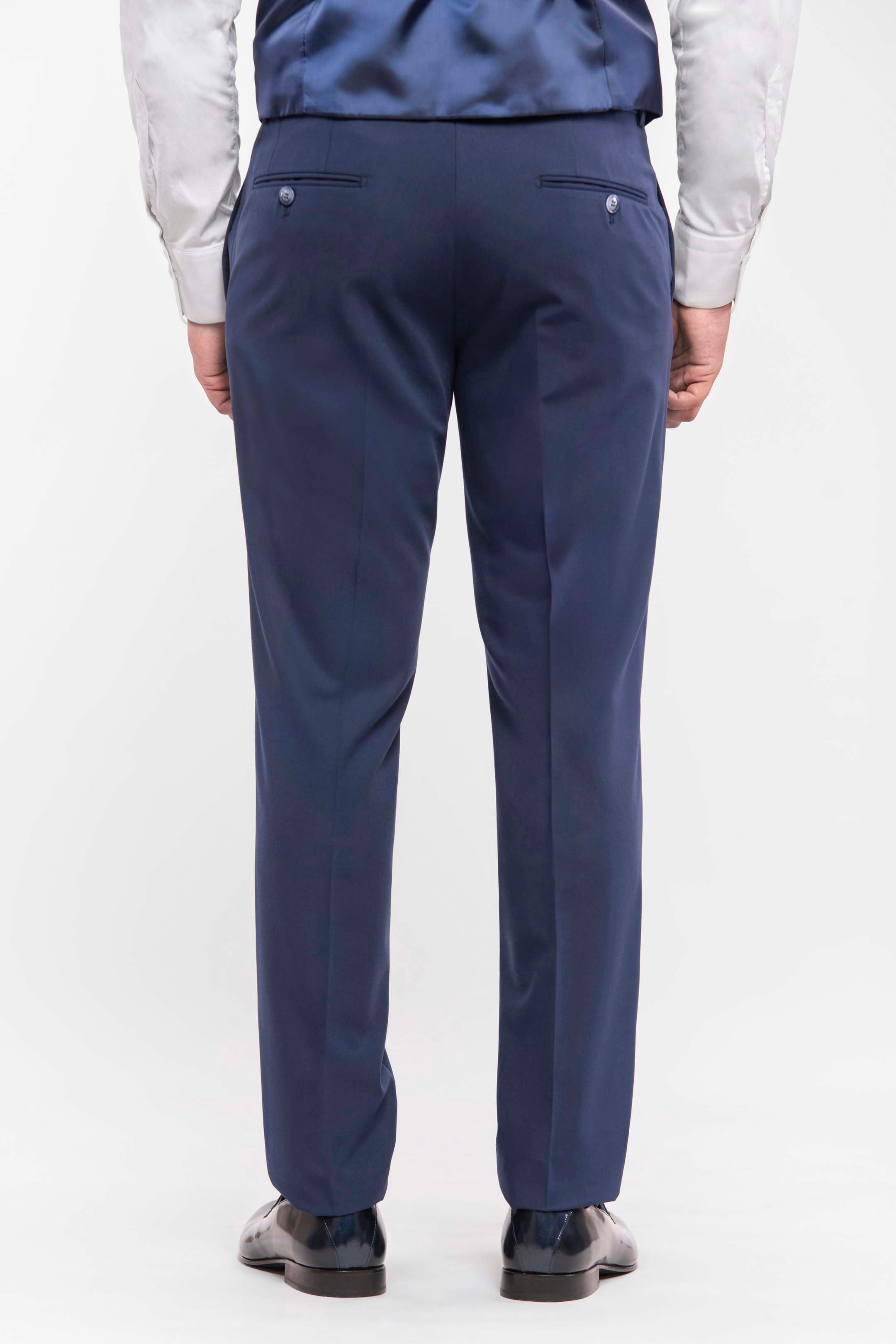 Esmoquin azul royal slim fit con solapa de pico y solapas en raso desmontables. Extremadamente versátil: perfecto para la noche con solapas en raso, y apto para el día retirando el doble cuello. Chaleco de tres botones y pajarita a tono con las solapas completan el look. Pantalones slim fit con bolsillo ribeteado, para quienes desean destacar con absoluta elegancia.