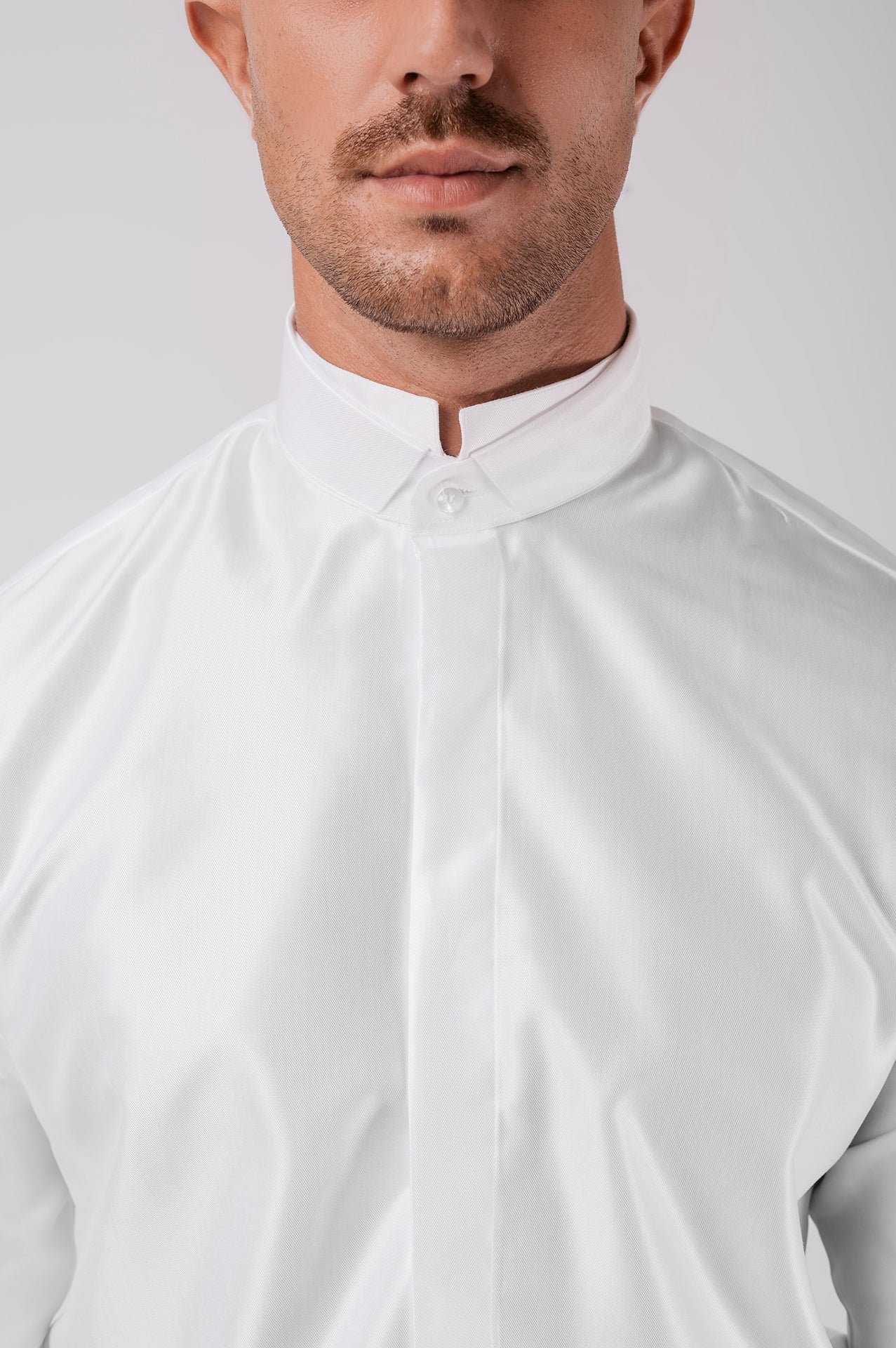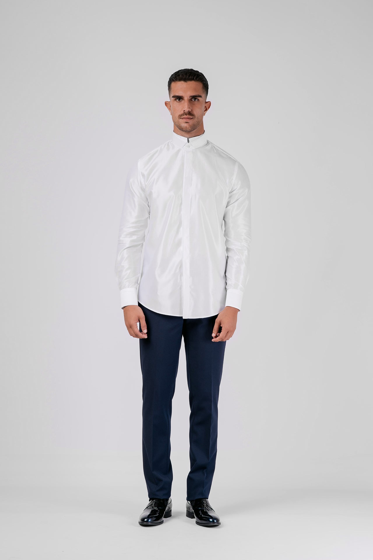 Camisa de sastre ROMA con cuello mandarín y tejido oblicuo