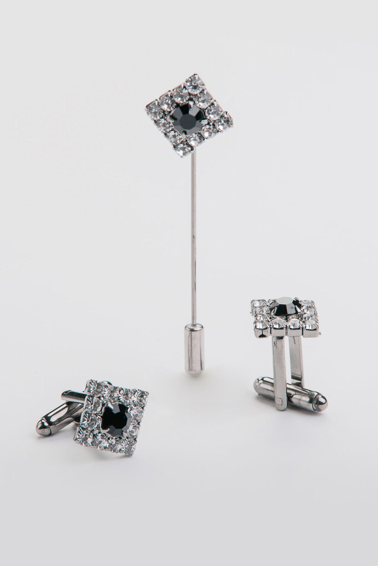 Combo "SQUARE" gemelos + alfiler con piedra Swarovski®